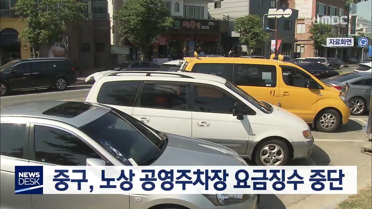 코로나19 확산을 막기 위해 중구가 노상 공영주차장의 유료 운영을 중단합니다. 중구청은 오늘(3/1)부터 주차요금 징수 인력이 투입되는 노상과 노외공영주차장 10곳의 유료화를 중단한다고 밝혔습니다. 이들 주차장에는 근무자 30명이 배치돼 각각 일평균 3~40명의 고객에게 주차요금을 징수하고 있습니다.//