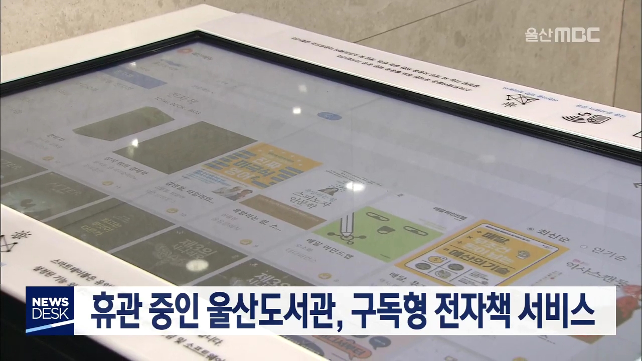 코로나19 확산 방지를 위해 휴관 중인 울산도서관이 다음달 3일부터 '구독형 전자책 서비스'를 재개합니다. 기존 '소장형 전자책'은 동시 열람 가능 인원수가 5명으로 제한됐지만, '구독형 전자책'은 인원수 제한이 없습니다. 울산도서관이 제공하는 구독형 전자책은 1천6백여 권입니다. //