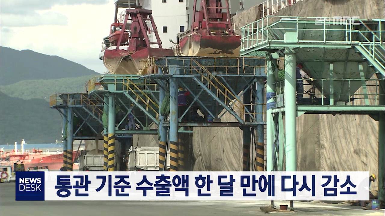 지난달 통관 기준 울산 지역 수출액이 지난해 같은 기간에 비해 3.6% 감소하며 한 달 만에 다소 감소세로 돌아섰습니다. 울산세관이 집계한 지난달 울산 지역 수출액은 57억 달러로 전국 수출액의 13.2%를 차지했으며 수입액은 49억 3천만 달러로 전국 수입액의 11.5%를 기록했습니다. 지난해 6월부터 지속적으로 줄어들던 ...