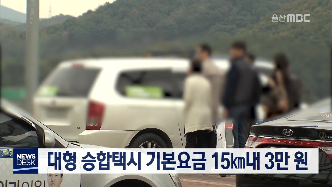 울산시는 오늘(2/22)부터 11~13인승 택시인 대형승합 택시의 기본요금을 3만 원으로 적용해 시행합니다. 기본요금 시행에 따라 앞으로 15km 안에서는 무조건 기본요금 3만원을 내야하고, 15km를 넘으면 1km마다 2천원씩을 더 내면 됩니다. 울산시는 대형승합 택시가 그동안 기본요금 없이 운행하며 나타난 일부 불합리한 점...