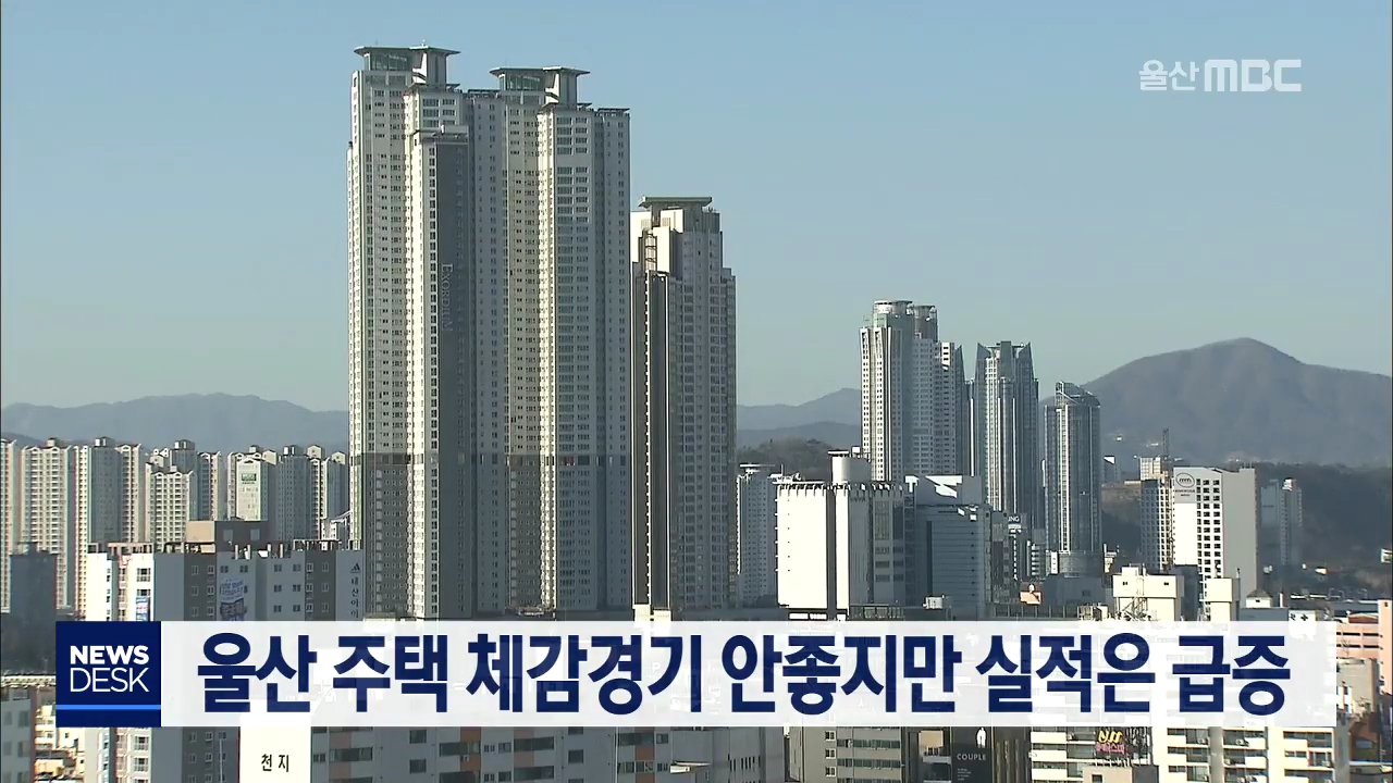 새해 들어 주택사업자들의 울산 지역 체감경기 지수가 두 달 연속 기준치 100을 밑돌고 있지만 실적을 오히려 급증한 것으로 나타났습니다.주택산업연구원이 조사한 지난달 울산지역주택사업경기실사지수는 78.2에 그쳤지만,실제 1월 실적치는 전국에서 가장 높은 111.1로 나타났습니다.2월 전망치도 여전히 기준치에 못 미...