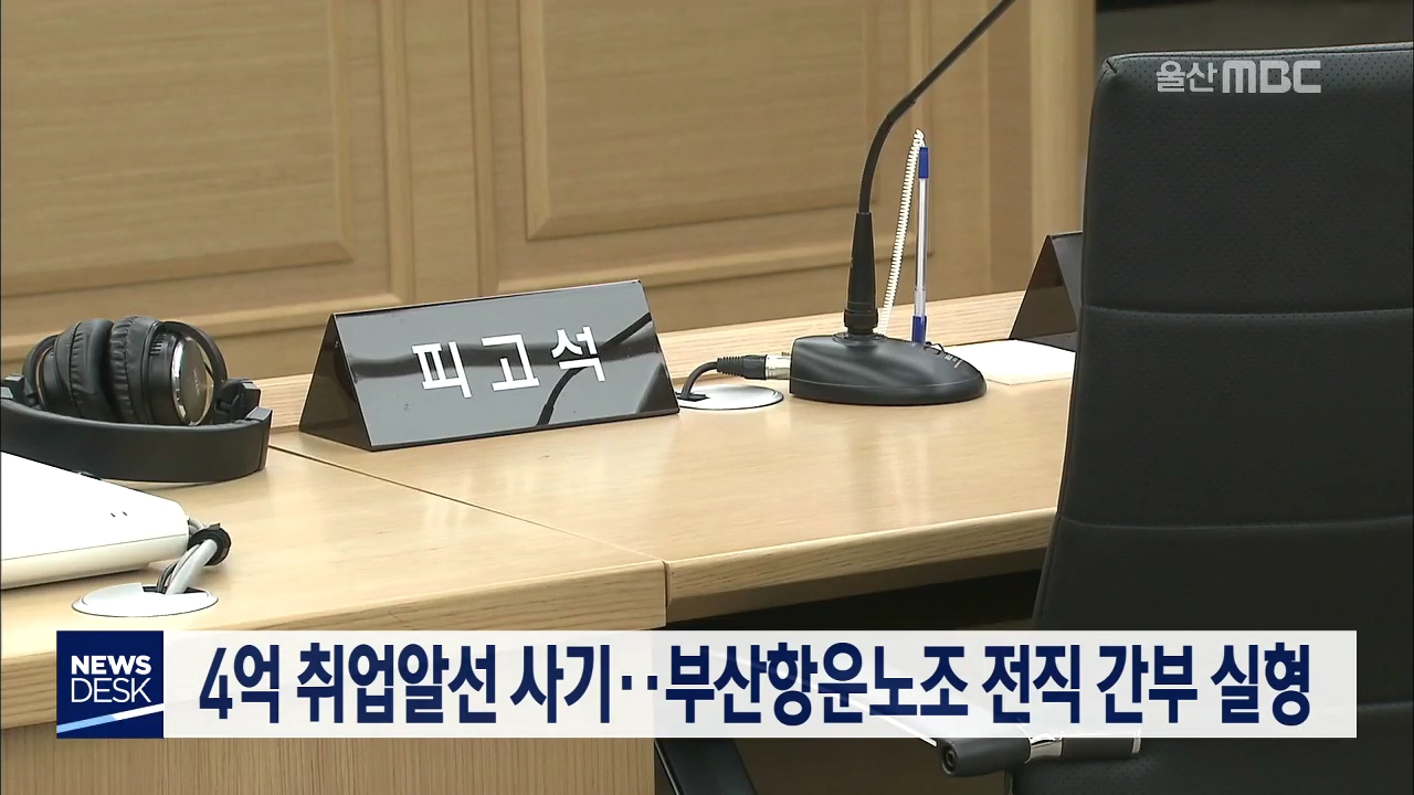 울산지방법원 박무영 판사는 사기 혐의로 기소된 57살 A씨에게 징역 3년을 선고했습니다.부산항운노조 전직 간부인 A씨는지난 2016년 자녀 2명을 항운노조에 취업하게 해 주겠다며 7천만 원을 받아 가로채는 등10차례에 걸쳐 취업 알선 등의 명목으로 4억 4천만 원을 가로챈 혐의로 기소됐습니다.//