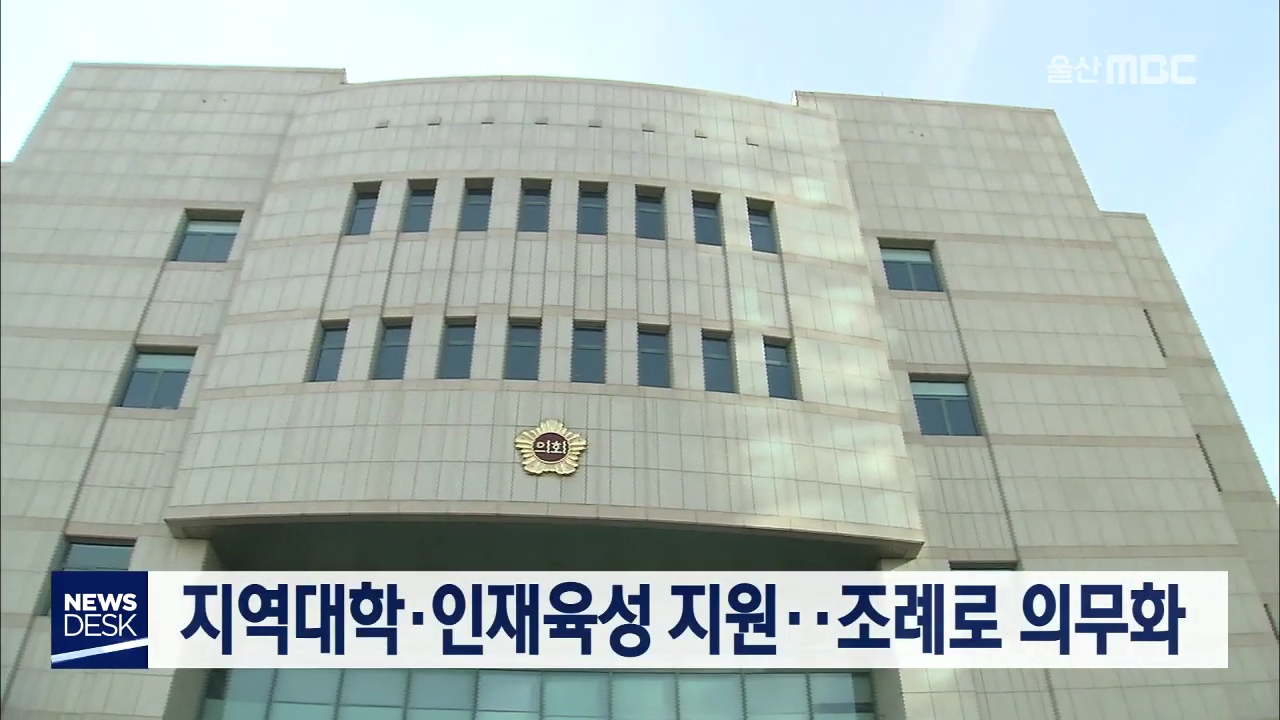울산시의회가 지역 대학과 지역 인재를 육성하기 위한 조례를 제정합니다.조례안에는 울산시장이 울산 소재 대학과지역 인재를 지원하는 계획을 의무적으로수립하도록 하고, 산업·연구기관과 협력해지역 인재 균형·특별채용 등을 확대하는내용을 담고 있습니다.시의회는 모레(2/11) 열리는 임시회에서해당 조례안을 심의하...