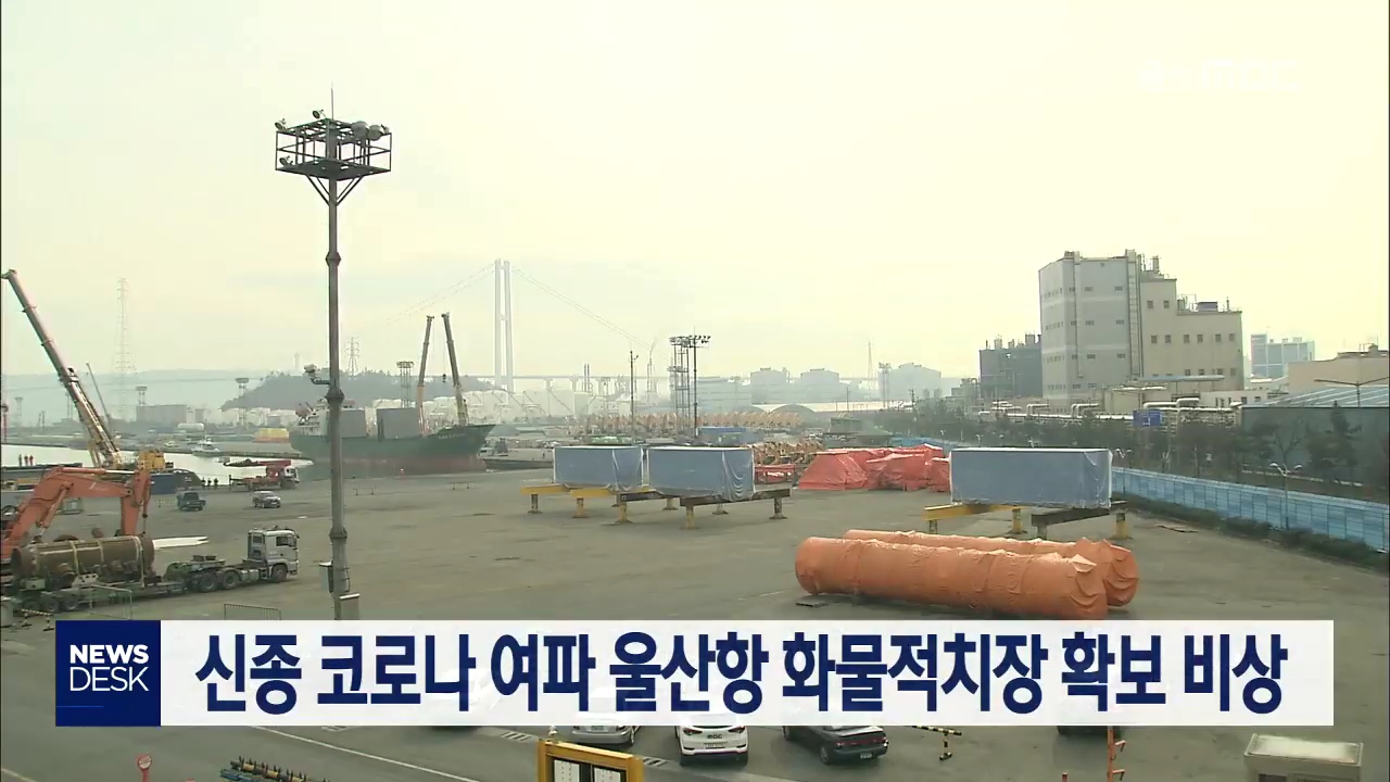 신종 코로나 확산 여파로 중국으로 가야 할 화물이 적체되면서 울산항만당국이 대체부지 확보에 나서고 있습니다.울산항만공사는 부산이나 인천 등에서 제때 중국으로 수출되지 못하는 화물이 포화상태에달하게 될 경우 이 화물이 울산항으로 올 수 있어, 공용부두인 용연부두를 우선 대체 화물적치장으로 활용할 계획입니...