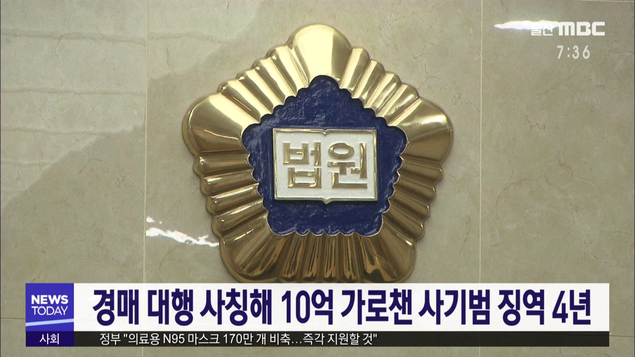 울산지방법원 이상엽 판사는 사기와 횡령, 변호사법 위반 혐의로 기소된 54살 A씨에게 징역 4년을 선고했습니다. A씨는 지난 2017년 경매를 대신 진행해주겠다고 속여 2차례에 걸쳐 6억 5천만 원을 받아 챙기는 등 지금까지 10억 3천여만 원을 가로채거나 횡령한 혐의 등으로 기소됐습니다. 재판부는 A씨가 같은 범죄로 10...