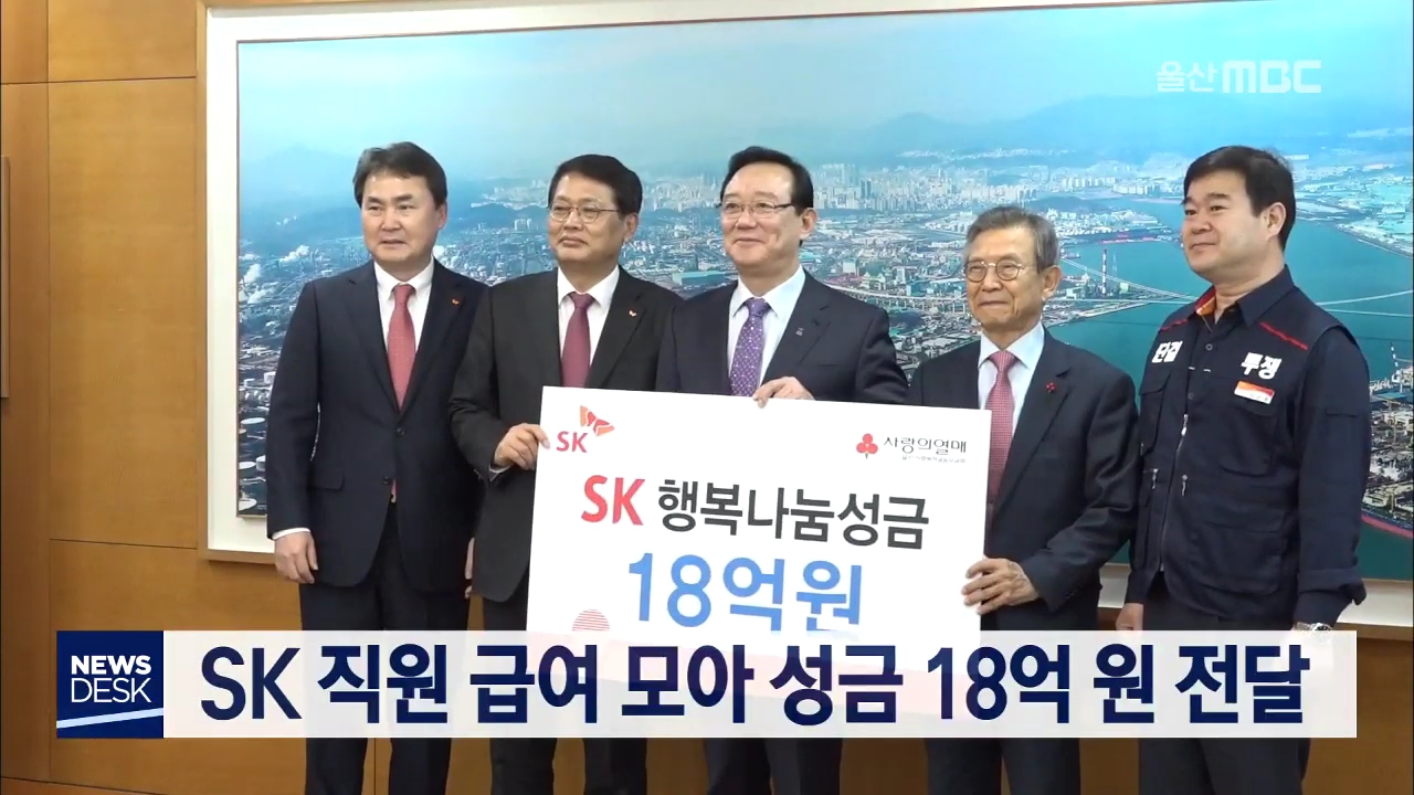 SK 울산 콤플렉스는 오늘(2/5) 지역 저소득층과 취약계층 위해 마련한 행복나눔성금 18억 원을 울산사회복지공동모금회에 기탁했습니다. 성금은 SK 직원들이 급여의 1%와 회사의 성금을 모아 마련했으며 난치병과 소아암 아동 치료비, 저소득층을 위한 주거환경 개선 등의 사업에 사용될 예정입니다.//