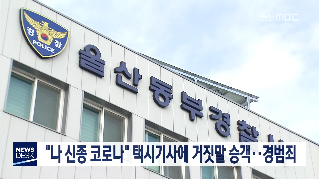 택시 운전기사에게 자신이 신종 코로나에 걸렸다고 거짓말을 한 승객이 경범죄로 처벌받게 됐습니다. 울산 동부경찰서는 어제(2/2) 오후 7시 40분쯤 택시를 탄 뒤 운전기사와 다투다 자신이 신종 코로나 확진자라고 한 40대 A씨를 붙잡아 경범죄 처벌법을 적용해 즉격심판에 넘길 예정입니다. 택시기사의 신고를 받고 A씨의...