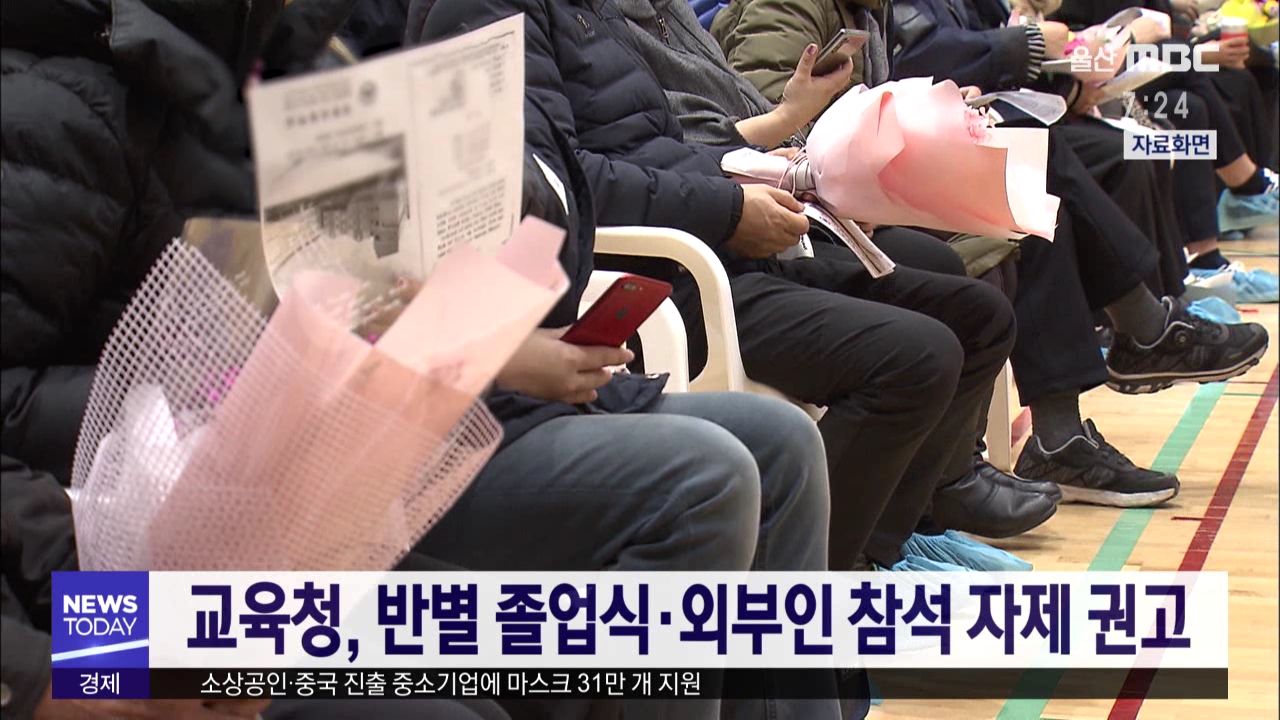 본격적인 졸업 철을 맞아 울산시 교육청이 각급 학교에 신종 코로나 확산 예방을 위한 대응책을 주문했습니다. 교육청은 울산에는 의심환자가 발생하지 않아 강제할 수는 없지만, 강당에서 열리던 졸업식을 반별로 진행하고 외부인사가 참석을 자제하도록 안내하고 있다고 밝혔습니다. 울산은 방학중 학교공사로 조기에 졸...