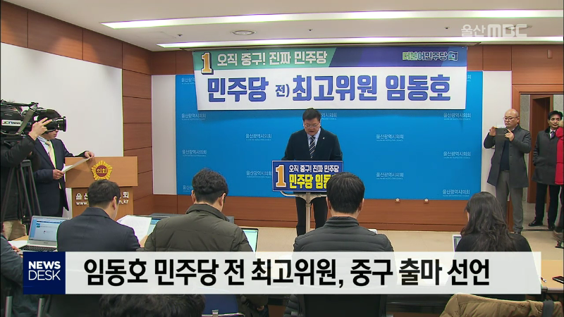 ◀ANC▶ 임동호 민주당 전 최고위원이 출마 선언을 하는 자리에서 김기현 전 울산시장을 향해 맞대결을 요구했습니다. 청와대 하명수사와 선거개입 의혹의 최대 피해자라고 주장하는 공통점이 있는 사람끼리 맞붙어 보자는 것입니다. 최지호 기자. ◀END▶ ◀VCR▶ 임동호 민주당 전 최고위원이 4.15 총선 출마를 선언한...