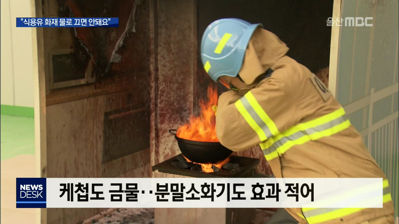 ◀ANC▶ 명절 때면 각종 전이나 튀김 요리를 하느라 식용유를 많이 쓰실 텐데요. 자칫 방심하다간 식용유에 불이 붙을 수도 있는데 이때 무턱대고 물을 끼얹으면 더 큰 불이 날 수도 있다고 합니다. 이용주 기자가 대처법을 알려드립니다. ◀END▶ ◀VCR▶ 식용유를 부은 프라이팬을 가스불에 올리고 잠시 자리를 비운 ...
