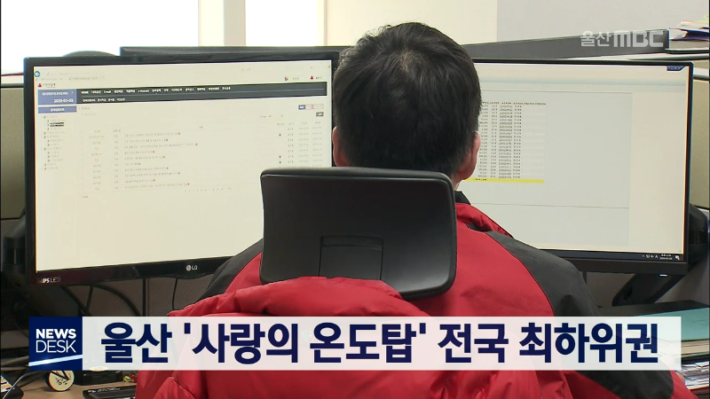 이달 말 모금 종료를 앞둔 울산 사랑의 온도탑 온도가 전국 최하위권에 머물고 있습니다. 울산 사랑의 온도탑 온도는 현재 66.9도로 전국 평균 86.2도에 크게 못 미치는 것은 물론 강원에 이어 전국에서 두 번째로 낮은 온도를 기록하고 있습니다. 공동모금회는 지역 경기 침체 속에 개인은 물론 기업 기부금이 크게 줄었다...
