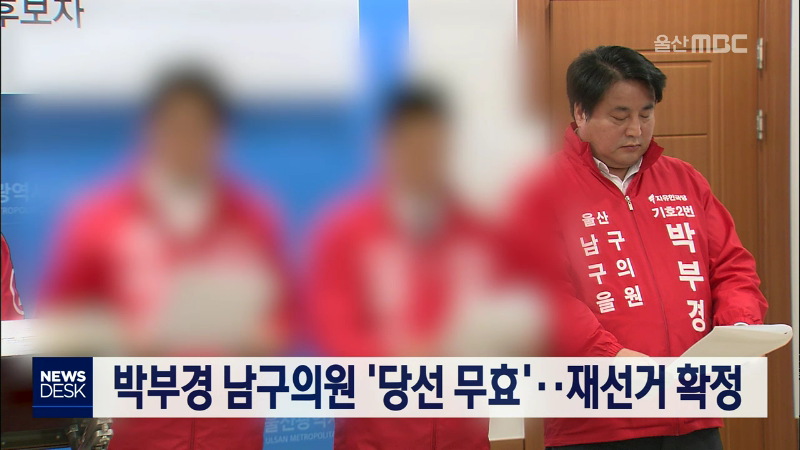 선거비용을 과다 지출한 혐의로 기소돼 1,2심에서 벌금 460만 원을 선고받은 박부경 남구의회 의원의 당선 무효가 확정됐습니다. 대법원은 오늘(1/16) 1,2심 판결을 유지하는 상고심 기각 결정을 내렸습니다. 대법원 확정 판결로 남구 바선거구 선암·대현동 기초의원 재선거는 4.15 총선과 함께 치러집니다.//