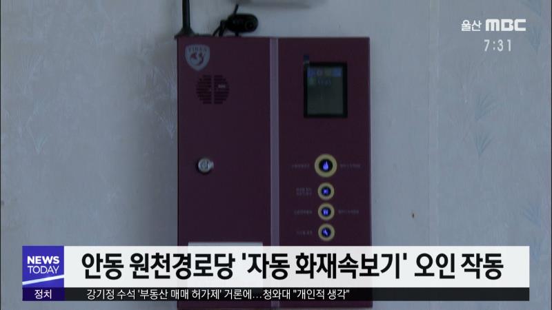 ◀ANC▶ 지난해 안동시가 '예산 쪼개기' 방식으로 시장 측근 업체와 편법 수의계약을 맺고, 경로당 수 백 곳에 화재속보기를 설치해 논란이 일었는데요. 이 화재속보기가 정작, 실제 작동에서 119 측에 잘못된 위치정보를 전달하면서 제 기능을 하지 못하고 있습니다. 안동 엄지원 기자 ◀END▶ ◀VCR▶ 도산면 원천리 ...