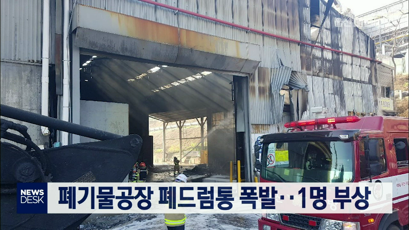 오늘(1/11) 오전 11시20분쯤 울산 울주군 온산읍의 한 폐기물 공장에서 폐드럼통이 폭발해 작업 중이던 운전기사 A씨가 다쳐 병원으로 이송됐습니다. 폭발과 함께 난 불은 공장 일부와 차량 등을 태워 소방서 추산 1천200만 원의 재산 피해를 내고 30분 만에 꺼졌습니다. 경찰과 소방당국은 폐드럼통을 옮기다 사고가 난 것...