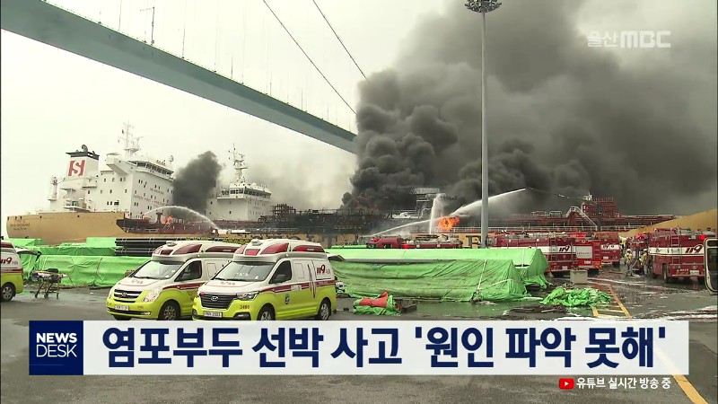 지난해 9월 염포부두 선박화재 사고의 원인 규명이 사실상 어려울 것으로 보여 원인이 밝혀지지 않은 채 종결될 가능성이 높아졌습니다. 울산해경은 합동감식으로 명확한 사고 원인을 밝힐 수 있을 것이라는 게 당초 입장이었지만, 감식 당시 2차 사고에 대한 우려로 폭발이 발생한 9번 탱크 내부로 진입하지 못했다고 전했...