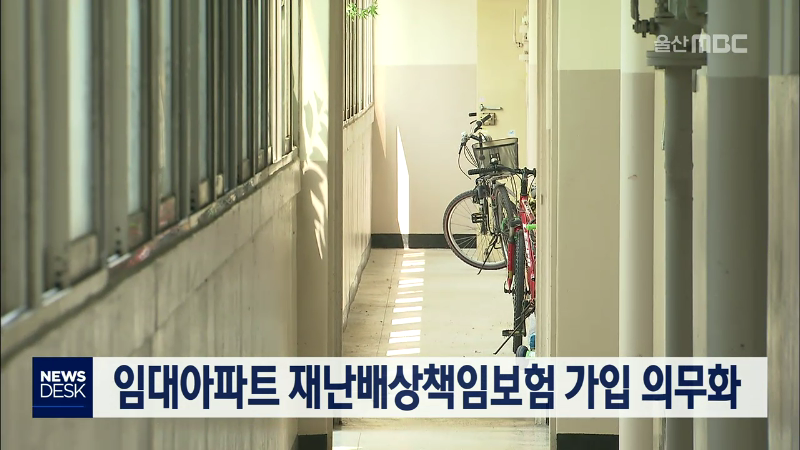 올해부터 15층 이하 임대아파트도 재난배상책임보험 가입이 의무화됩니다. 재난배상책임보험은 화재와 폭발 등으로 인한 피해를 보상하는 것으로, 아파트 관리사무소가 보험에 가입해야 합니다. 울산에서는 병영삼일아파트와 교동주공아파트 등 22곳이 보험 가입 의무 대상입니다. //