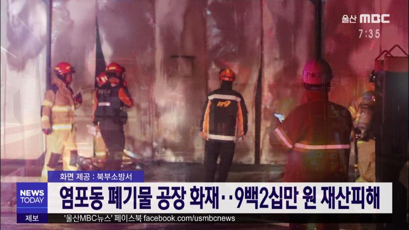 염포동 폐기물 공장 화재..9백2십만 원 재산피해