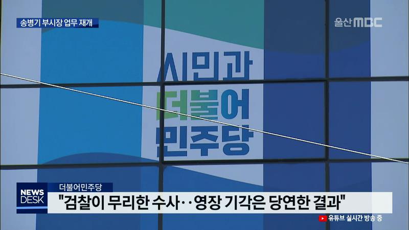 ◀ANC▶ 선거 개입 의혹과 관련한 구속영장이 기각된 송병기 경제부시장이 오늘(1/2) 업무에 복귀했습니다. 총선 출마를 준비해 오다 검찰 수사를 받으며 주춤했던 송 부시장의 향후 행보에도 관심이 쏠리고 있습니다. 유희정 기자. ◀END▶ ◀VCR▶ 송병기 경제부시장은 검찰이 청구한 구속영장이 기각되자 즉시 울산으...