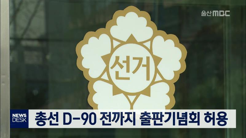 내년 4.15 총선에 나서는 후보들이 선거일 90일 전까지 허용되는 출판기념회를 잇따라 개최합니다. 더불어민주당은 동구 김태선 후보가 오는 8일, 울주군 김영문 후보가 11일, 남구 갑 심규명 후보가 13일, 남구을 김광수 후보가 15일 출판기념회를 열고 정치 철학을 소개한다고 밝혔습니다. 총선 후보자는 오는 16일까지 ...