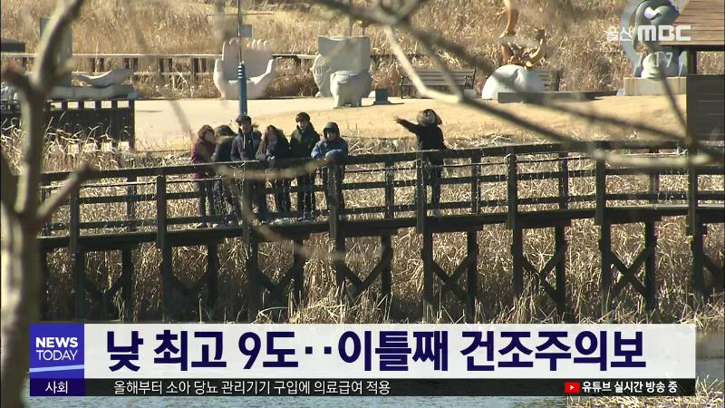 오늘(1/2) 울산지방은 맑겠고 아침 최저 0도로 시작해 낮 최고 9도의 기온 분포를 기록하겠습니다. 내일도 대체로 맑겠고 아침 최저 2도에서 낮 최고 10도의 기온 분포로 평년보다 다소 포근한 날씨가 예상됩니다. 울산기상대는 이틀째 건조주의보가 이어지고 있다며 화재와 산불예방에 주의를 당부했습니다.