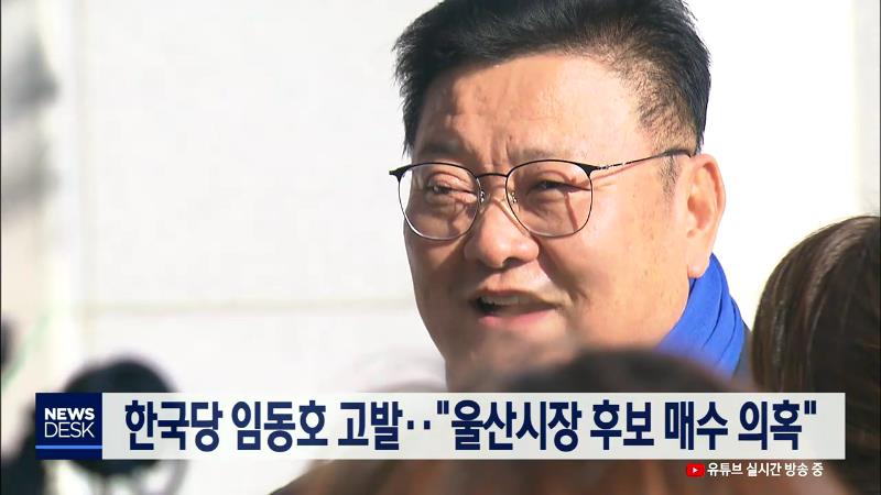 자유한국당은 오늘(12/30) 임동호 전 더불어민주당 최고위원을 공직선거법 위반 혐의로 검찰에 고발했습니다. 한국당은 지난해 울산시장 더불어민주당 경선에서 송철호 후보에게 단독 공천을 주려는 청와대 측 인사로부터 임 전 최고위원이 사퇴를 종용받았고, 그 대가로 공공기관장 등의 직위를 제안받았다고 주장했습니다...