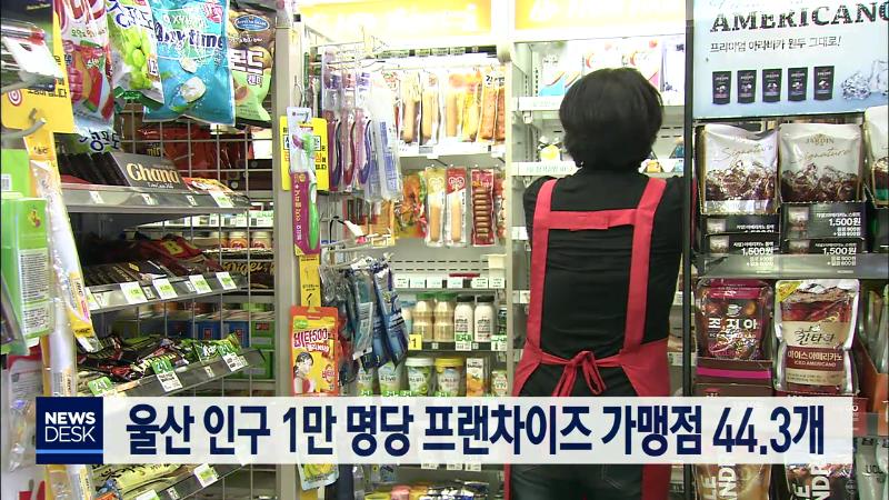 지난해 기준 울산의 프랜차이즈 가맹점이 5천여 개가 넘는 것으로 나타났습니다. 통계청의 2018년 프랜차이즈 조사결과에 따르면 울산의 가맹점 수는 5천112개에 종사자 수는 1만7천711명, 매출액은 1조 4천470억 원인 것으로 집계됐습니다. 울산은 인구 1만 명당 가맹점 수는 44.3개로 전국 평균 40.4개보다 많았으며 전국...