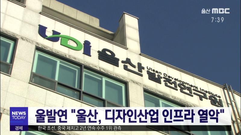 울산의 디자인산업 인프라가 전국 대도시 가운데 가장 열악한 것으로 나타났습니다. 울산발전연구원 변일용 박사에 따르면 울산에 위치한 디자인산업 전문회사는 전국 7개 광역시 가운데 가장 적은 78개에 불과했습니다. 또, 부산과 대구, 경북, 광주, 인천 등에서 공공디자인센터가 운영돼 200억 원 안팎의 연매출을 거두...
