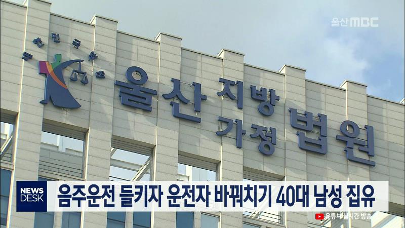 울산지방법원 박성호 판사는 음주운전과 범인도피교사 혐의로 기소된 43살 A씨에게 징역 8개월에 집행유예 2년을 선고했습니다. A씨는 지난 6월 울주군의 한 도로에서 혈중 알코올농도 0.093%로 술에 취해 운전을 하다 경찰에 적발되자 함께 타고 있던 46살 B씨가 운전한 것처럼 속인 혐의로 기소됐습니다.(데스크> 한편 A...