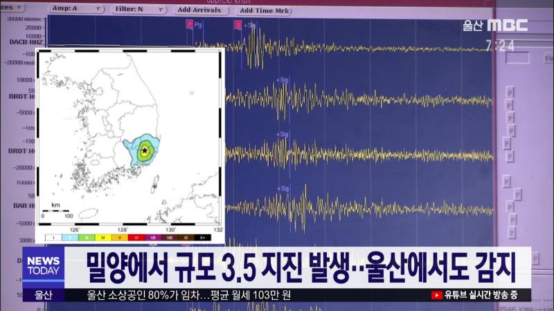 밀양에서 규모 3.5 지진 발생.. 울산 피해접수 없어