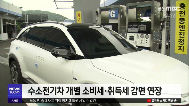 ◀ANC▶ 정부가 수소전기차 보급을 늘리기 위해 개별 소비세와 취득세 등 각종 세제 감면을 연장합니다. 현대자동차가 다양한 차량 서비스를 제공하며 사업 다각화에 본격 나서고 있습니다. 유영재 기자 ◀END▶ ◀VCR▶ 수소전기차의 개별 소비세 감면 적용 기간이 내년부터 2022년까지 3년 연장되며, 감면 한도는 4백...