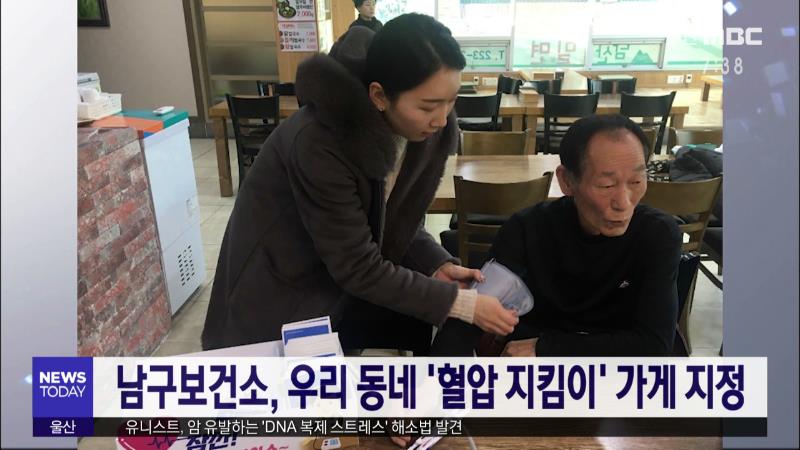 남구보건소는 지역 주민들의 심뇌혈관질환을 예방하기 위해 와와식당, 카페아지트 등 삼호동 소재 가게 5곳을 '혈압 지킴이' 가게로 지정했습니다. 혈압 지킴이 가게로 지정된 곳에는 혈압 바구니가 비치돼 있어 가게를 방문하는 주민 누구나 혈압을 측정할 수 있습니다. //
