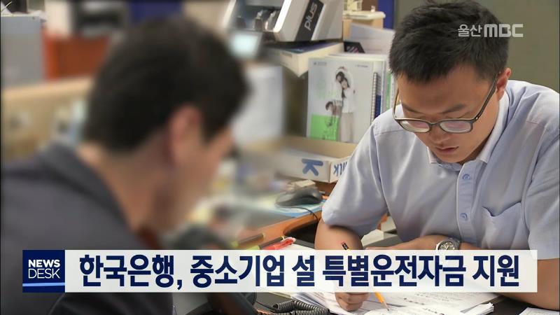 한국은행 울산본부는 설을 앞두고 중소기업의 자금 운용을 돕기 위해 200억 원 규모의 설 특별운전자금을 지원합니다. 지원한도는 업체당 5억 원으로 오는 27일부터 다음 달 23일까지 울산과 인접지역 소재 중소기업에 운전자금을 신규 대출할 경우, 현재 년 0.75%인 금융중개지원 대출금리로 지원됩니다.//