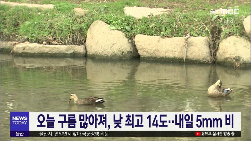 울산은 성탄절인 오늘(12/25) 고기압의 가장자리에 들면서 맑다가 낮부터 차차 구름이 많아지겠습니다. 오늘 낮 최고 기온은 평년보다 5도 정도 높은 14도로 예상됩니다. 내일은 흐리다 오후에 5mm 미만의 비가 내리겠으며,기온은 아침 최저 5도 낮 최고 9도의 분포를 보이겠습니다. 울산기상대는 내일 비가 그친 뒤 북서쪽...