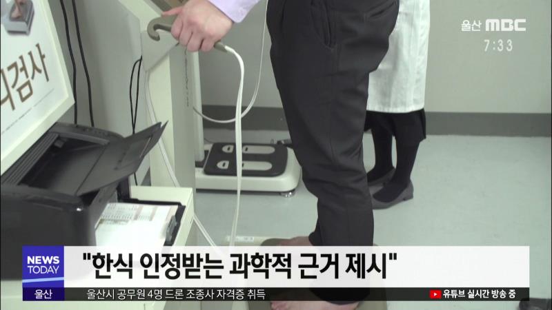 ◀ANC▶ 한식이 육류 위주의 서양식에 비해 건강에 도움이 되는 것으로 나타났습니다. 체중을 줄이고 콜레스테롤 수치도 낮춰 비만이나 성인병 예방에 효과가 큰 것으로 나타났습니다. 안동 김건엽기자 ◀END▶ 다양한 나물을 얹은 잡곡 비빔밥. 또 김치와 된장찌개. 전형적인 한식입니다. 미국 농무부가 만든 미국 권장...
