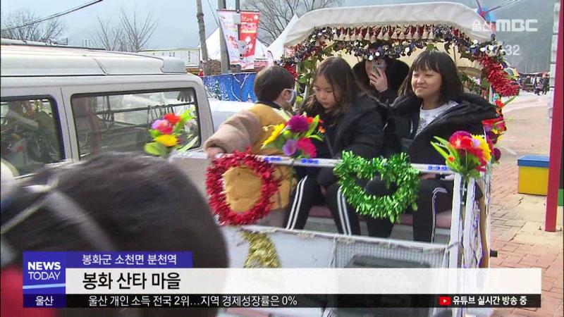 ◀ANC▶ 크리스마스를 앞두고 봉화 '산타 마을'이 문을 열었습니다. 하루 10명도 이용하지 않던 시골 간이역이 동심을 찾아 떠나는 기차 여행객들로 북적이고 있습니다. 안동 김건엽기자 ◀END▶ 한산하던 시골 간이역이 사람들로 북적입니다. 동화 속 마을을 그대로 옮겨 놓은 듯한 풍경에 한껏 들뜬 모습들입니다. 눈이...