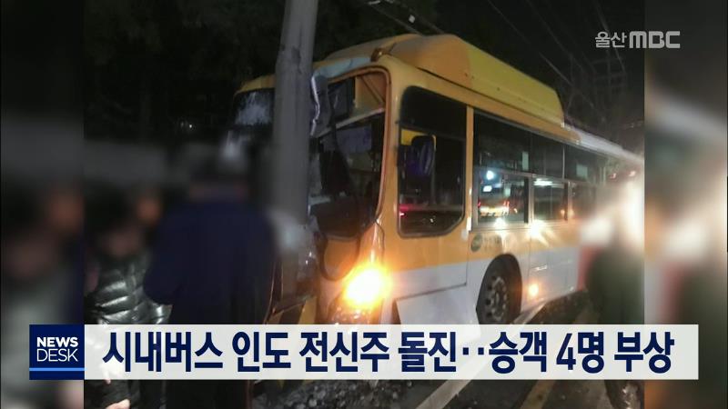 시내버스 인도 전신주 돌진..승객 4명 부상