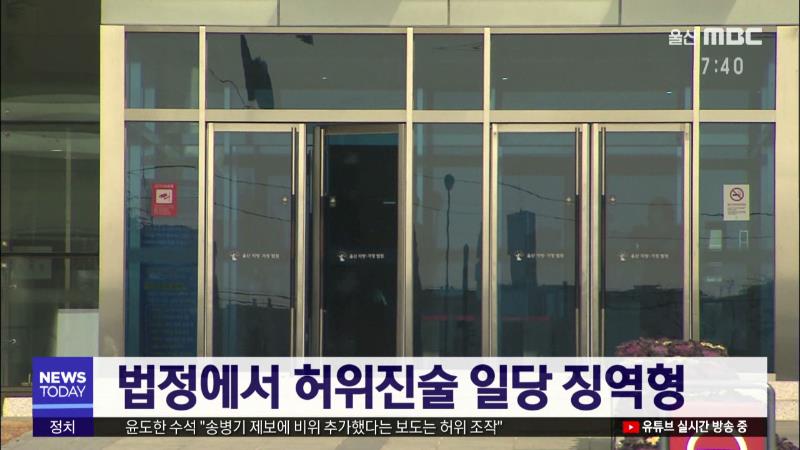사기 혐의로 재판에 넘겨진 일당 2명이 법정에서 허위진술을 했다 모두 실형을 선고받았습니다. 울산지법 제5형사단독 이상엽 판사는 위증교사 혐의로 기소된 A 씨에게 징역 1년을 위증 혐의로 기소된 B 씨에게 징역 10개월을 선고했다고 밝혔습니다. 동네 선후배 관계인 이들은 허위 임대차 계약을 맺고 전세자금을 대출받...