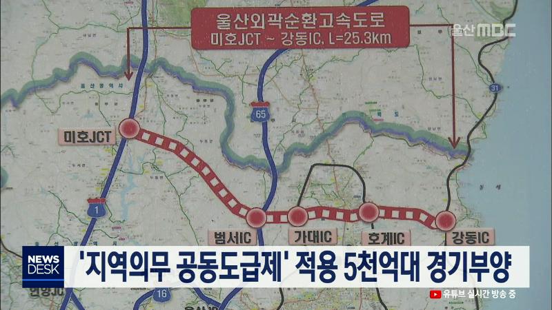 정부가 국가균형발전프로젝트 중 20개 사업에 대해 '지역의무 공동도급제'를 적용하기로 했습니다. 이에 따라 울산에서는 울산외곽순환도로 건설과 산재전문공공병원 등 2개 사업에 대한 지역업체 의무도급비율이 40% 이상으로 올라가게 됐습니다. 이들 사업의 예산 규모는 1조4천255억 원으로 이 가운데 5천억 원 이상의 ...