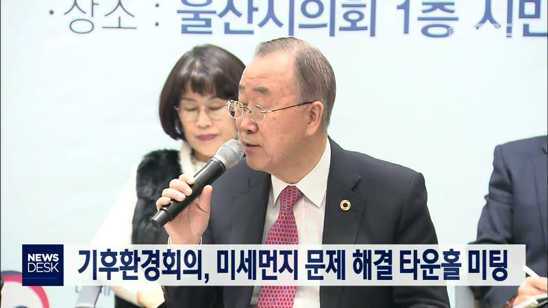 반기문 전 유엔사무총장이 위원장을 맡고 있는 국가기후환경회의가 오늘(12/19) 시청에서 '미세먼지 문제 해결 타운홀 미팅'을 가졌습니다. 이번 타운홀 미팅은 국내 최대 산업단지기 위치한 울산에서 미세먼지 문제 해결을 위한 지역민들의 생생한 의견을 듣기 위해 마련됐습니다. 대통령 소속 기구인 국가기후환경회의는 ...