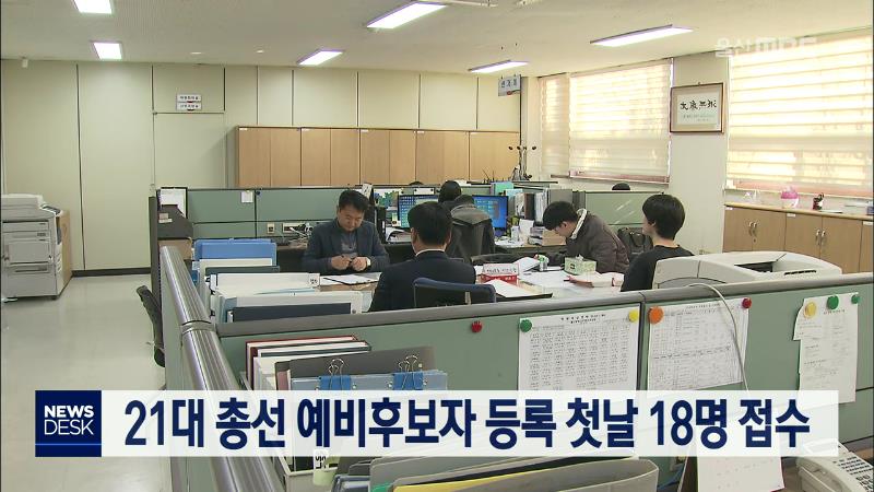 내년 4월 15일 실시되는 제21대 국회의원 선거의 지역구 예비후보자 등록 첫날인 오늘(12/17) 모두 18명이 접수를 마쳤습니다. 울산시선관위에 따르면 중구에 5명의 예비후보가 등록해 가장 많았고, 남구갑에는 1명이 등록했습니다. 예비후보자 등록을 마치면 선거사무소 설치와 선거운동용 명함 배부, 어깨띠 착용, 본인이...