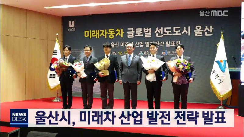 '울산 미래차 산업 발전 전략 발표'가 오늘(12/17) 시청 시민홀에서 자동차산업 관계자 등 150여 명이 참석한 가운데 열렸습니다. 발표회에서 울산시는 2030년까지 미래차 글로벌 선도도시로 도약하기 위해 위해 6천500억 원을 투입해 미래차 연구소 설립과 혁신클로스터 조성, 전기차와 수소차 기술개발에 나선다고 밝혔습...