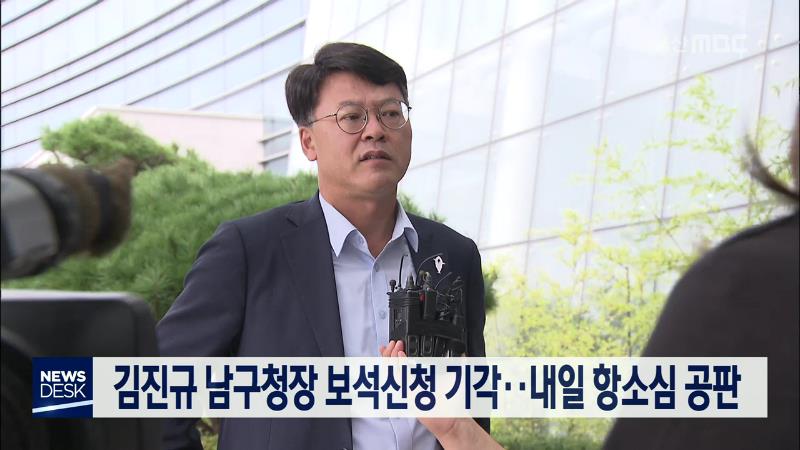 공직선거법 위반 등의 혐의로 1심에서 징역 10개월과 벌금 1천만 원을 선고 받고 법정구속된 김진규 남구청장이 신청한 보석이 기각됐습니다. 김진규 남구청장은 불구속 상태에서 구청장 직무를 수행하게 해 달라며 보석을 신청했지만 항소심 재판부는 보석의 사유가 없다며 기각했습니다. 한편 내일(12/18)은 김진규 남구...