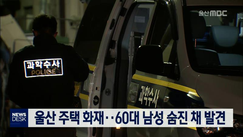 오늘(12/17) 오후 5시쯤 울산시 중구 복산동의 한 단독주택 1층에서 불이 나 집 안에 있던 60대 남성이 숨진채 발견됐습니다. 불은 방과 거실 등 주택 내부를 태우고 15분 만에 꺼졌지만, 소방대원들이 집 내부 잔불을 정리하다 이 집에 사는 65살 A씨가 불에 타 숨져 있는 것을 발견했습니다. 경찰은 자세한 화재 경위를 ...