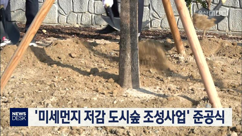 '미세먼지 저감 도시숲 조성사업' 준공식이 오늘(12/17) 남구 황성동에서 열렸습니다. 이 도시숲 조성을 위해 울산시는 미포국가산업단지 내 시유지 1천372 제곱미터를 제공하고, 케이투코리아는 숲 조성 사업비 5천만 원을 후원했습니다. 이 사업은 울산시가 추진하는 '시민과 함께하는 1천만 그루 나무 심기' 사업의 하나...