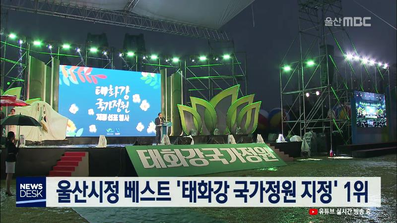 울산시가 올해 추진한 사업 중 시정을 빛낸 2019년 시정 베스트에 태화강 국가정원 지정이 선정됐습니다. 2위는 산재전문 공공병원 건립 확정, 3위는 국가 수소경제 활성화 로드맵 울산 선포, 4위는 울산외곽순환도로와 농소~외동 국도건설, 5위는 현대모비스 부품공장 유치 등 울산형 일자리 본격 시동이 선정됐습니다. 20...