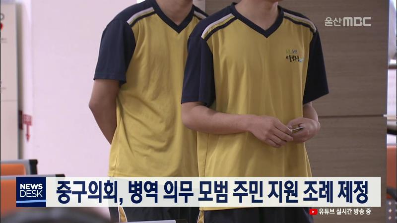 중구의회, 병역 의무 모범 주민 지원 조례 제정