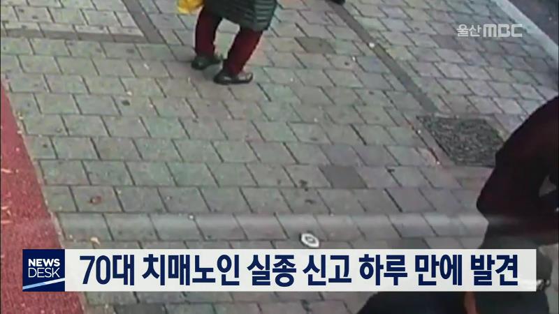 그제(12/11) 오후 남구 삼산동에서 실종된 70대 치매 남성이 공개 수사 하루 만에 시민 신고로 발견됐습니다. 경찰은 어젯밤(12/12) 9시쯤 울주군 청량읍 덕하삼거리 주변에서 실종자 79살 심기섭 씨가 식당 주인의 신고로 발견됐다고 밝혔습니다. 경찰은 식당 주인이 연락처가 적힌 심 씨의 목걸이를 보고 가족에게 연락했...