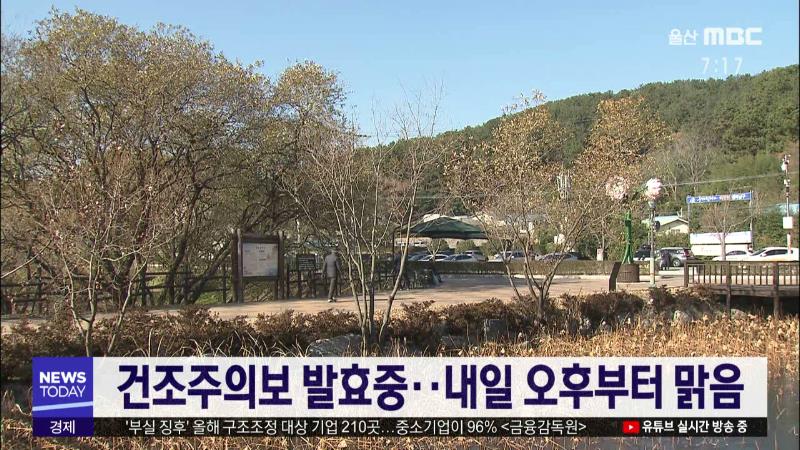 오늘(12/13) 울산지방은 이틀째 다시 건조주의보가 내려진 가운데 아침 최저 -1도로 시작해 낮 최고 11도의 기온 분포를 보이겠습니다. 주말인 내일은 구름 많다가 오후부터 차차 맑아지겠고 2도에서 11도의 기온 분포를 보이겠습니다. 울산기상대는 당분간 찬 공기가 유입되고 바람이 강하게 불면서 체감온도는 더 떨어질 ...