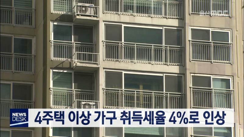 (경제)4주택 이상 가구 취득세율 4%로 인상