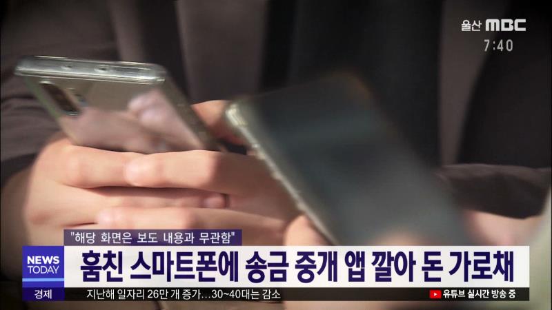 훔친 스마트폰에 송금 중개 앱 깔아 돈 가로채